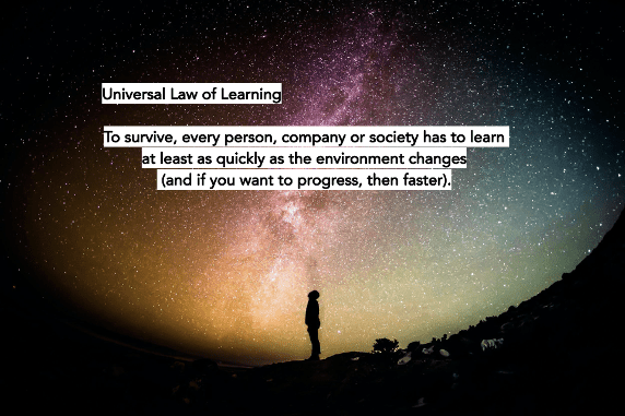 Para sobrevivir, todas las personas, organizaciones o sociedades necesitan aprender al menos tan rápido cómo el medio cambia (y si quieren progresar, entonces más rápido que la velocidad del cambio).