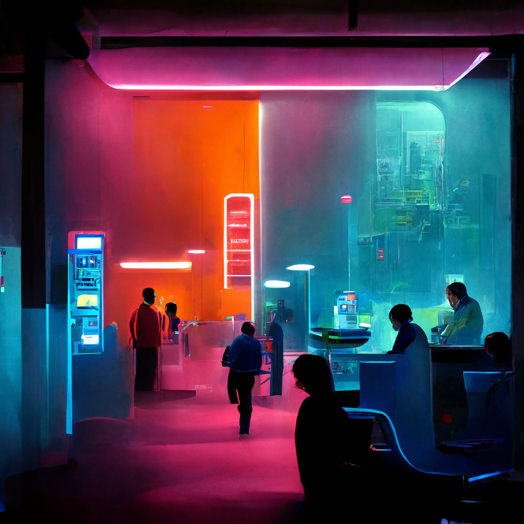 «Machines and humans learning from each other in a futuristic environment with fluorescent colors at night» y en otro caso esta: «Futuristic university with people learning in an atmosphere of fluorescent colors».