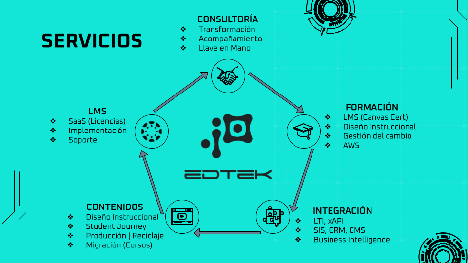 Nuestros clientes podrán contar con soluciones a medida, diseñadas para modernizar sus sistemas educativos, mejorar la experiencia de aprendizaje y mantenerse a la vanguardia de las tendencias tecnológicas en educación.