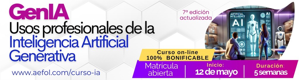 Si quieres aprender de esta y otras herramienta te animo y recomiendo mi curso intensivo donde hacemos un completo recorrido por las herramientas de IA Generativa para la eficiencia y productividad en el trabajo con AEFOL.